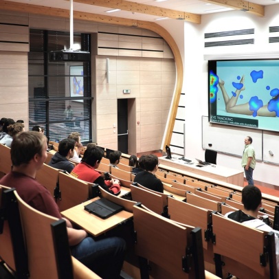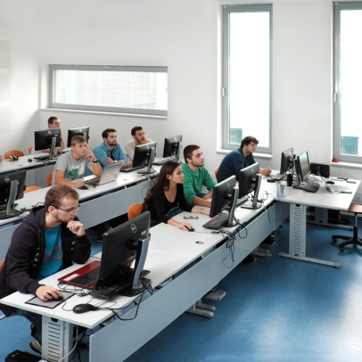 Teaching and other activities of the department are now conducted in one of the most modern university buildings in the country. It offers not only high-quality and modern facilities, but also a pleasant environment for teaching, studying, and meeting. The Department has 10 computer rooms with more than 200 computers, which are prepared for both common use (programming, database management, software design, etc.) and specialized teaching using the latest parallelization and graphic applications. Teaching also takes place in several other classrooms with multimedia equipment and, of course, modern lecture rooms with a capacity of up to 200 students. In addition, university facilities are also used, especially lecture rooms with capacities of up to 450 students.
