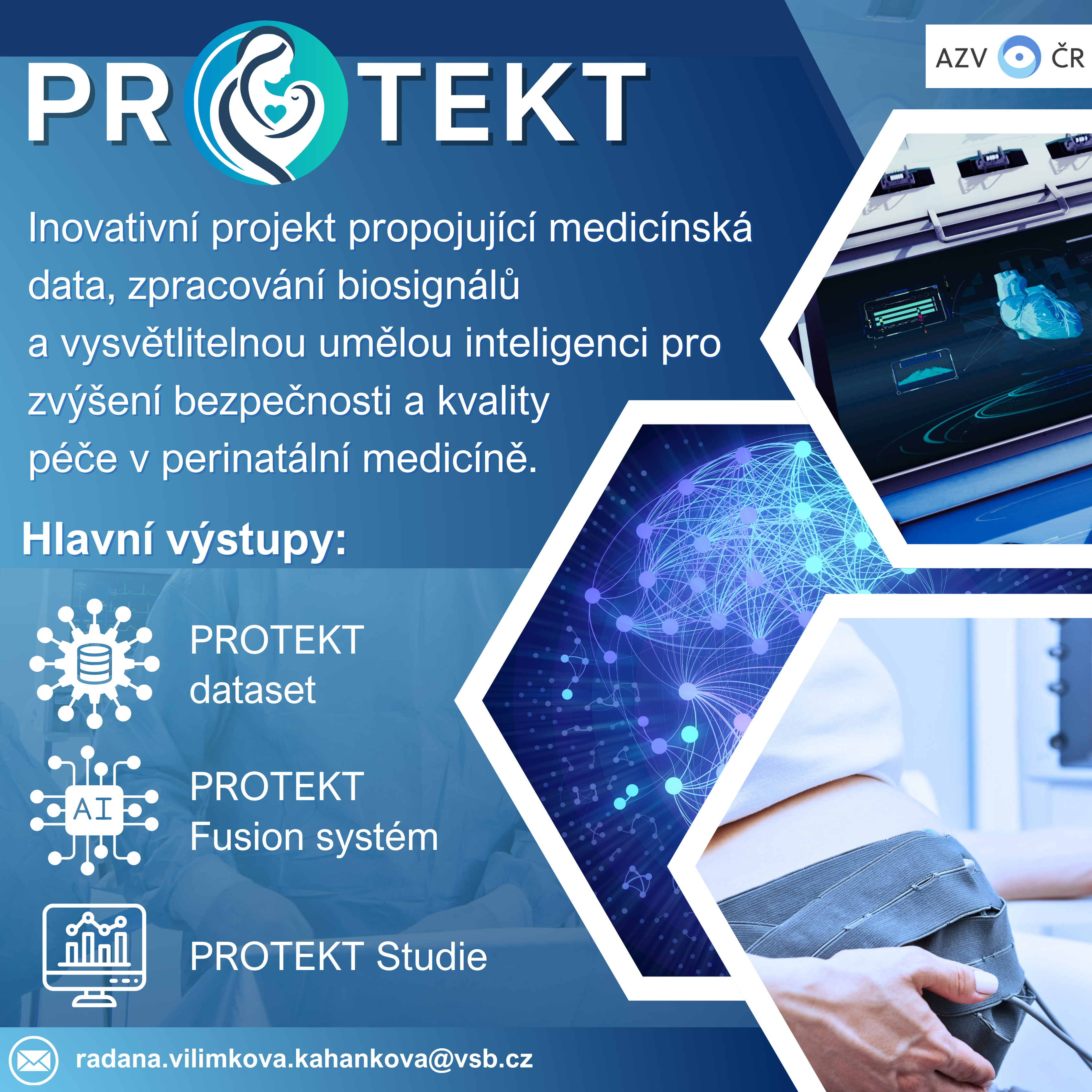 Projekt PROTEKT se zaměřuje na modernizaci feto-maternální péče během porodu prostřednictvím pokročilého zpracování signálů, umělé inteligence a úzké klinické spolupráce. Cílem je vytvořit tři klíčové výstupy: