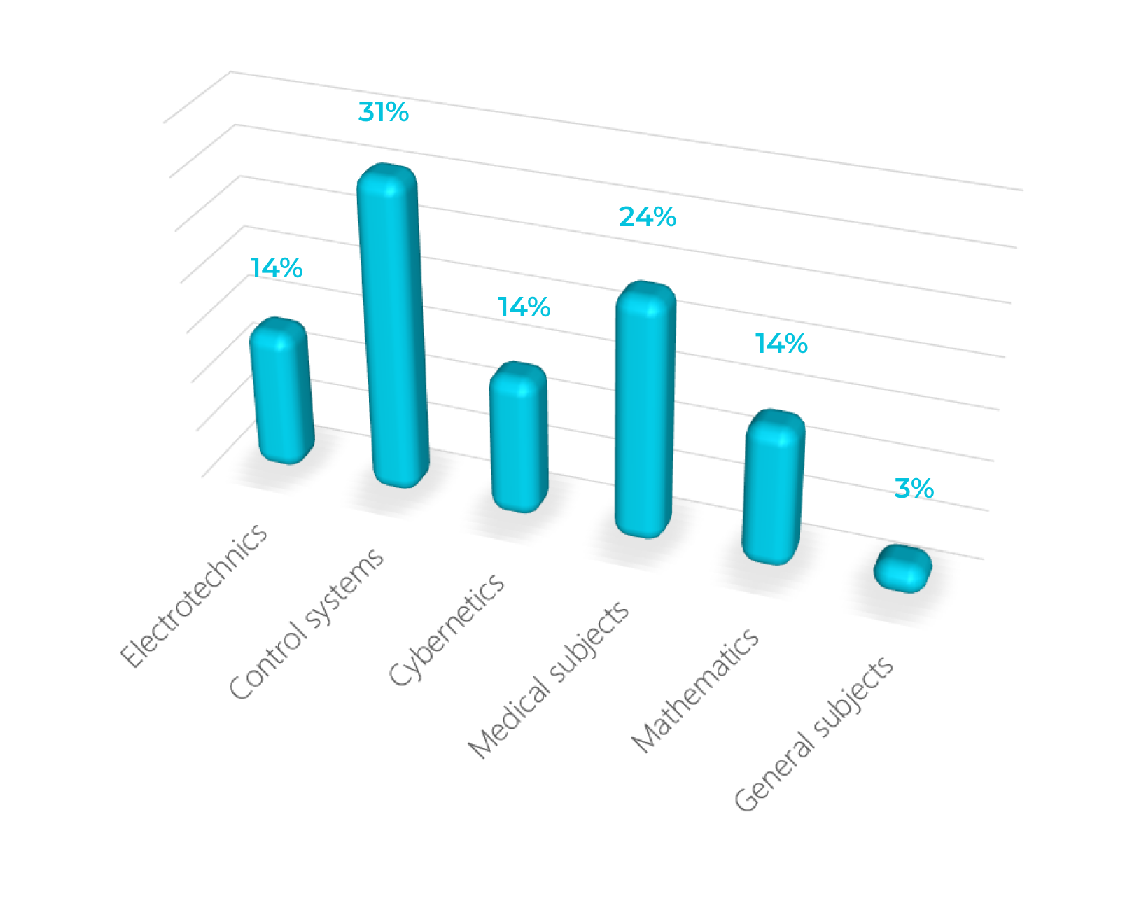 The program is designed to allow study in other application areas of cybernetics, which are based on the coexistence of electrical engineering, computer science and computational mathematics at the FEI and which intervene in many areas of human activity, such as biocybernetics: modeling and simulation of physiological processes, measurements, transmission, processing and sensors of biological signals and data, design of hardware and software for medical systems, etc. Other application areas are biomedical engineering, management (control theory), as well as informatics, bioinformatics, stochastic modeling using advanced statistical methods, etc.