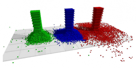 Numerické řešení mnoha inženýrských úloh vede na minimalizaci konvexní kvadratické funkce s rovnostními popř. nerovnostními omezeními – tzv. úlohu kvadratického programování. Tato práce se zabývá vývojem a implementací algoritmů s obrovským počtem neznámých pro úlohy kvadratického programování zejména s nerovnostními omezeními složitějšími než lineárními jako jsou např. kontaktní úlohy se třením se sférickými či eliptickými nerovnostními omezeními, nebo úlohy granulární dynamiky využívající metodu diskrétních prvků (DEM) nebo diferenciální variační nerovnice (DVI) - viz. obrázek. V DVI metodě úloha kvadratického programování s lineárním nerovnostním omezením musí být řešena v každém časovém kroku simulace, neznámými zde jsou normálové kontaktní síly mezi tělesy. V případě, že uvažujeme i Coulombovské tření, obržíme úlohu kvadratického programování se separovatelnými kónickými omezeními, odpovídající neznámé pak reprezentují třecí kontaktní síly. Efektivita jednotlivých algoritmů implementovaných v CUDĚ byla porovnána na řadě testovacích benchmarků.