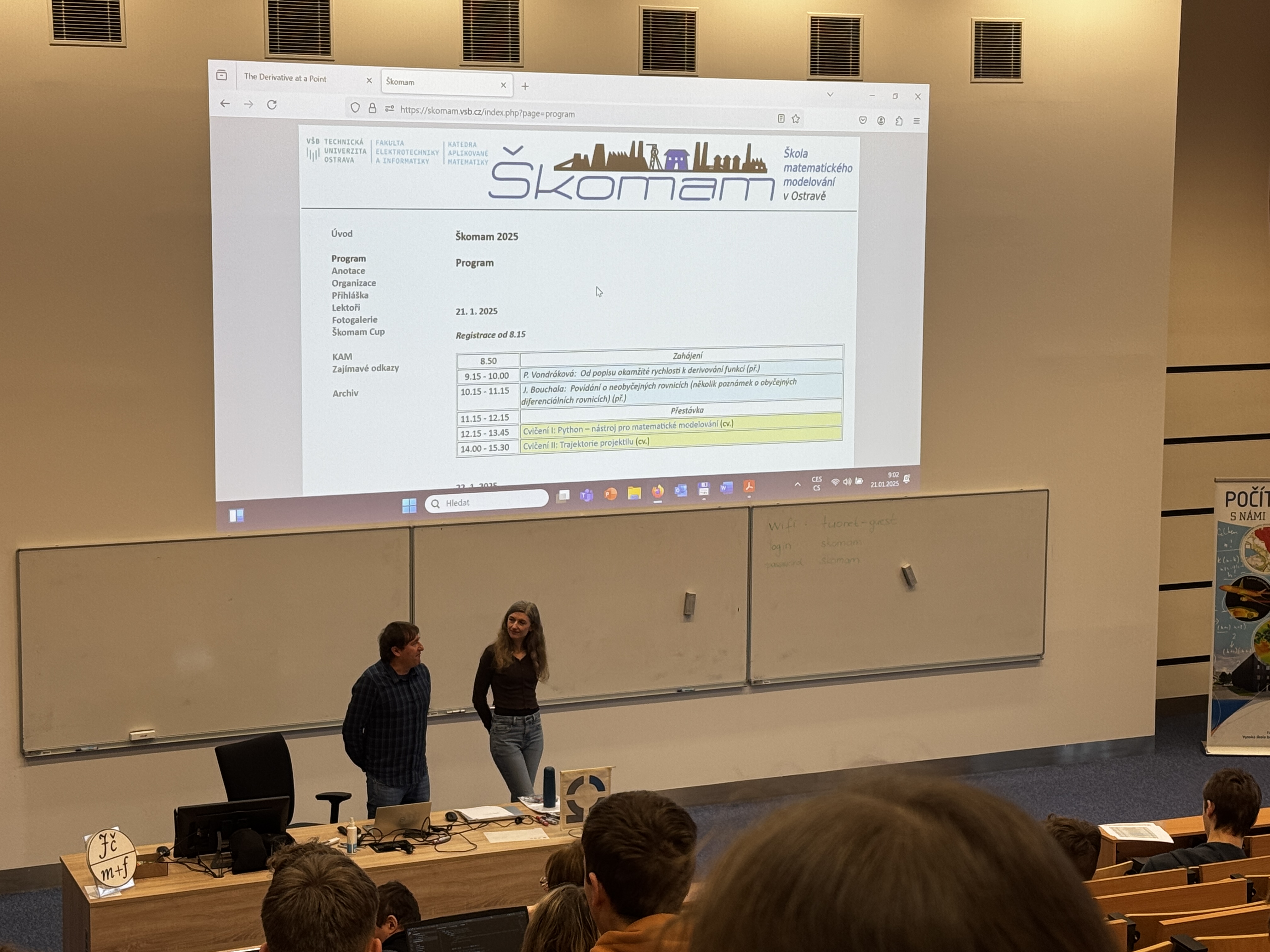 Do kurzu ŠKOMAM (Škola matematického modelování) se letos přihlásilo téměř 70 studentů posledních a předposledních ročníků středních škol. Dopoledne je čekaly přenášky z různých oblastí, například o neobyčejných rovnicích, pravděpodobnosti kolem nás, postřehové hřeDobble nebo o matematice v hazardních hrách. Odpoledne probíhala počítačová cvičení a účastníci kurzu se také podívali do Národního superpočítačového centra IT4Innovations.
