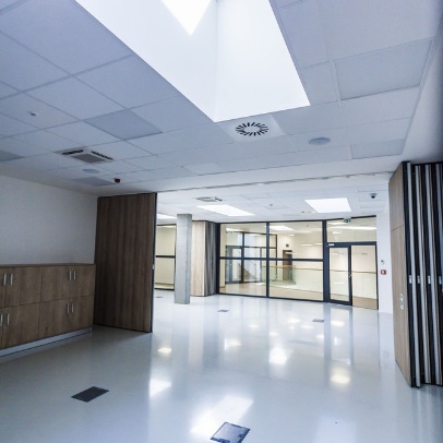 Integrována specifická senzorická síť optických vláken (podlahy, zdi, nosná konstrukce, přístupová místa), vyhodnocení zatížení podlah, monitoring vibrací vlivem provozu technologií, teplot, plynů, identifikace osob a další.